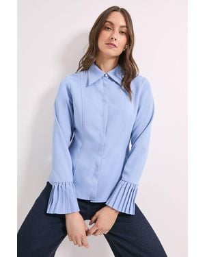 Pleated Cuff Detail Peplum Shirt - Blue