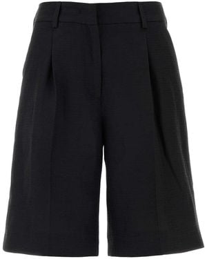 Viscose Blend Bermuda Shorts Pleated Front - Black