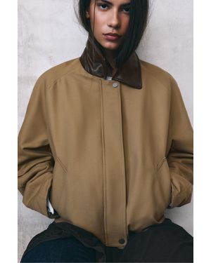 Jacket With Leather Effect Collar - Natural