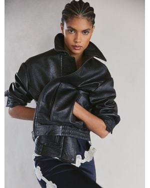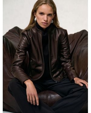 Allie - Chocolate Brown Petite Leather Collarless Biker Jacket, Us 4 - Brown