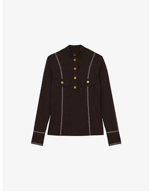 Eva Contrast-Stitch Long-Sleeve Stretch-Knit Top - Black