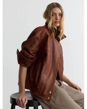 Petite Textured Leather Oversized Jacket - Brown