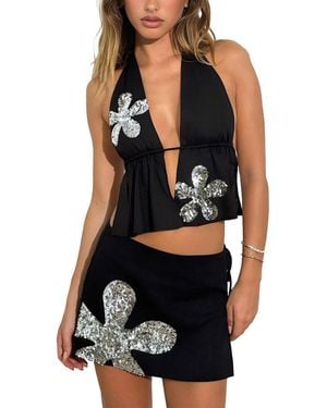 2Pc Rhinestone Mesh Top & Skirt Set - Green