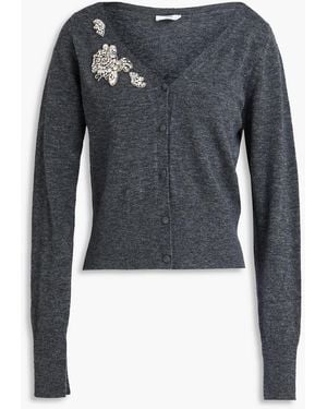 Embellished Stretch-Knit Cardigan - Black