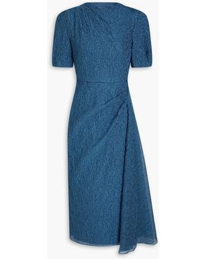 Draped Cloqué Midi Dress - Blue