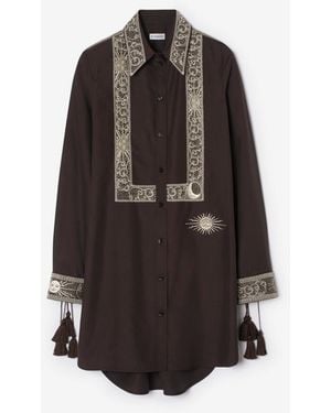 Embroidered Silk Shirt Dress - Brown