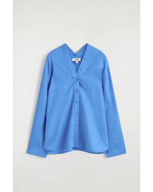 Button-Detail Linen V-Neck Shirt - Blue