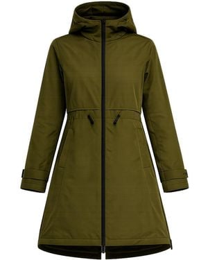 Long Trench Coat With Hood, Zipper Closure, And Zipper Detail On The Sides, Khaki - Green
