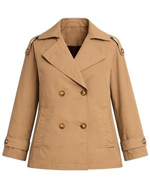 Neutrals Short Quilted Trench Coat With Double-Breasted Buttons, Side Pockets, And Flared Back - Natural