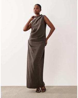Column Slouchy Hip Maxi Dress - Brown