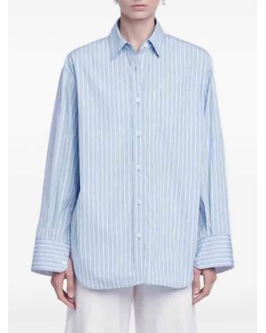 Tunic Stripe-Pattern A-Line Shirt - Blue