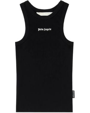 Logo Printed Ribbed-Knit Tank Top - Brown