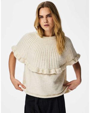 Jaquard Detail Tie Front Puff Sleeve Top - White