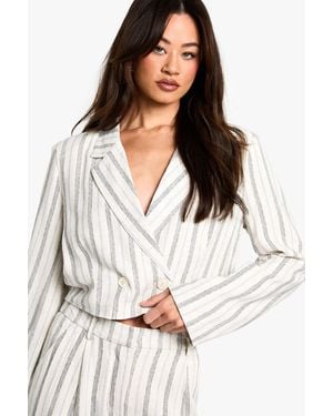 Tall Stripe Linen Look Cropped Blazer - White