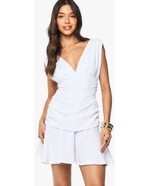 Linen Look Ruched Skater Dress - White