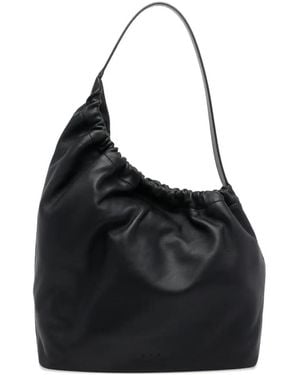 Dark Leather Cosmo Bowling Top Handle Bag - Black