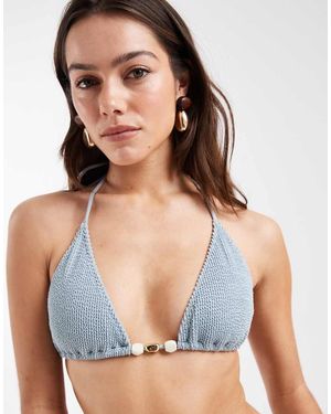 X Isabella Whittingham Textured Bandeau Bikini Top With Ring Detail - Blue