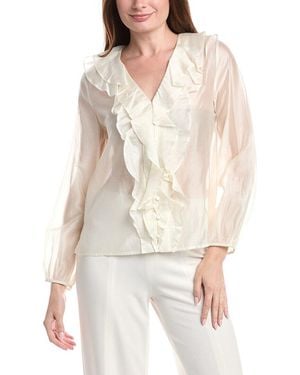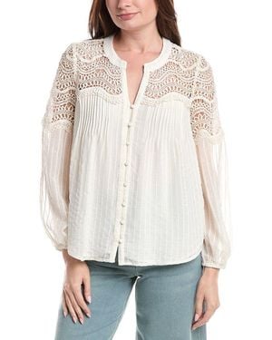 Extended Shoulder Pleat Keyhole Front Top - Blue