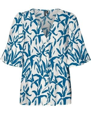 Relaxed Fit V-Neck Short Sleeve Blouse - Blue