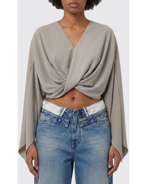 Long Sleeve Nylon Silk Top Pleated Back - Blue