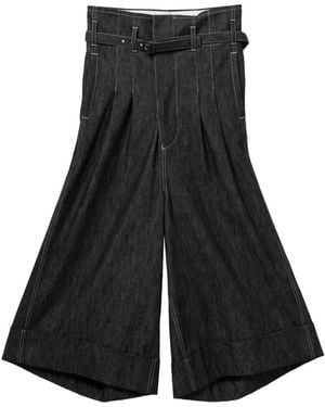 Wide Leg Denim Trousers - Blue