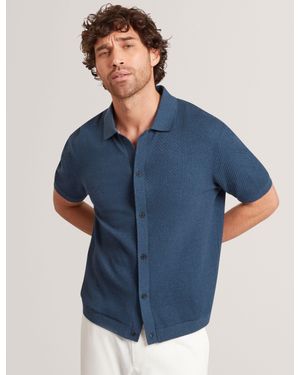Connyr Textured Knit Button-Through Polo Shirt - Blue