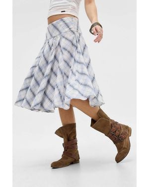 Uo Betty Check Crinkle Awkward Midi Skirt - Blue
