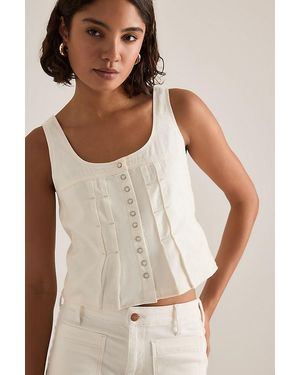 Linen-Blend Pleated Corset Top - Natural