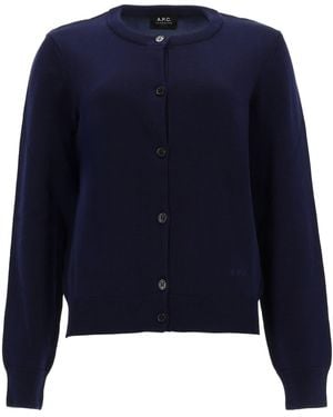 Wool Crewneck Ami De Coeur Cardigan - Blue