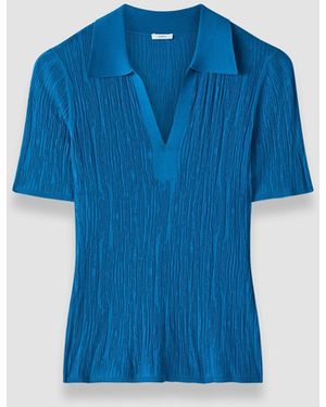 Aliane Crinkle Viscose Polo Top - Blue