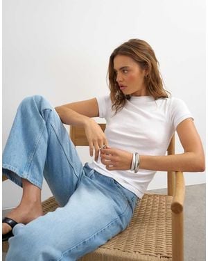 Boxy Tee With Embroidered Sunflower Graphic - White