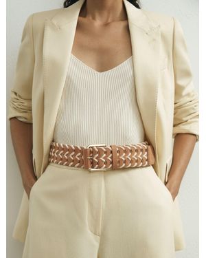 Leather Braided Waist Belt - Natural