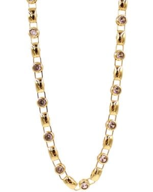 14K Gemstone Station Necklace - Metallic