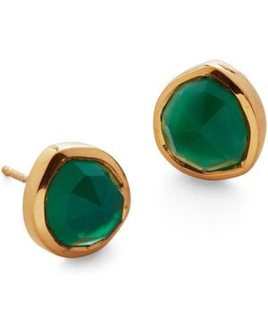Vermeil And Onyx Siren Stud Earrings - Green