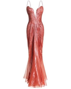 Cecilia Draped Silk Muslin Bustier Gown - Red