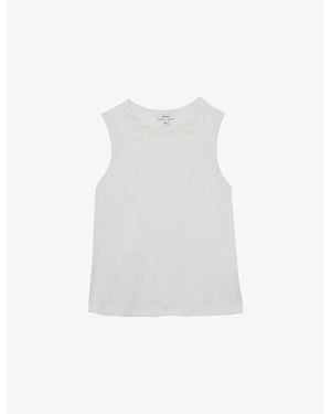 Linen-Blend Tulip Print Wide-Leg Trousers - White