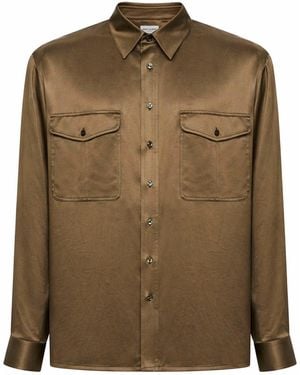 Classic Strips Shirt With Classic Collar And Long - Brown