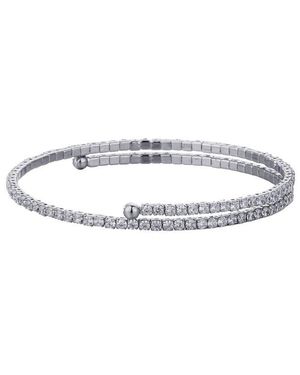 Plated Adjustable Crystal Tennis Cuff Bracelet - White