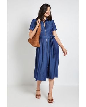 Petite Denim Look Drop Waist Midi Dress - Blue