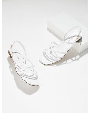Kathryn Buckle Speckled Canvas Vachetta Block Heel Sandals - White