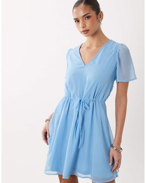 Waist Detail Short Sleeve Mini Dress - Blue