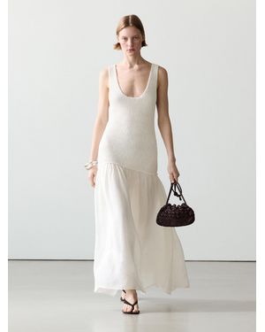 Double-Layer Knit Dress With Long Sleeves - Natural