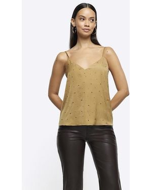 Khaki Diamante Cami Top - Natural