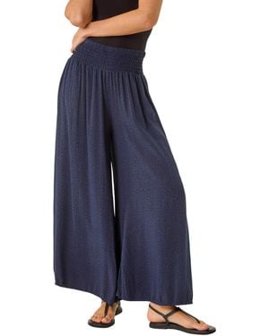 Ditsy Floral Elastic Waist Culotte Trousers - Blue