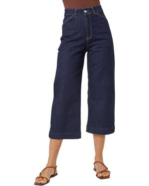 Wide Leg Stretch Denim Cropped Culottes - Blue