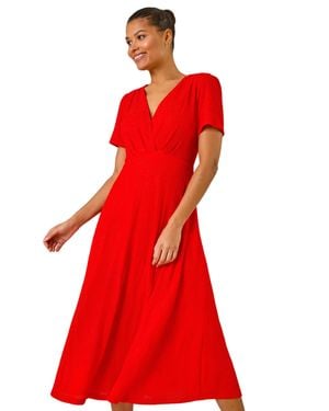 Textured Wrap Bodice Midi Dress