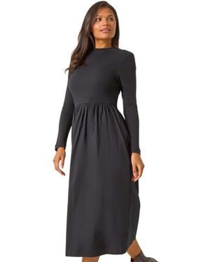 Cotton Stretch Jersey Mix Midi Dress - Black