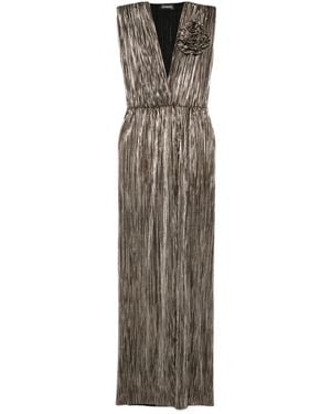Sleeveless V-Neck Midi Dress - Metallic