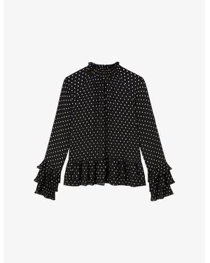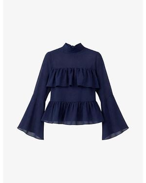 Frill-Trim Long-Sleeve Chiffon Blouse - Blue