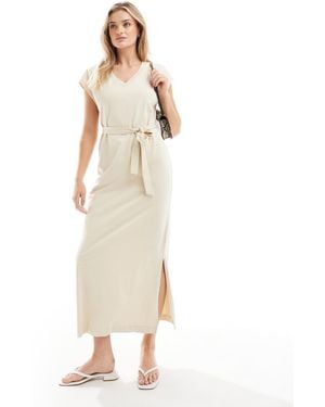 Cap Sleeve Belted Midi T-Shirt Dress - Natural
